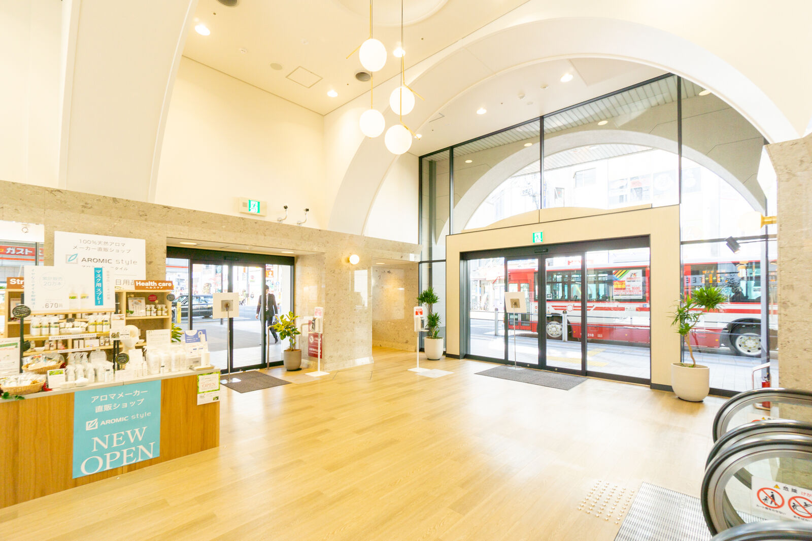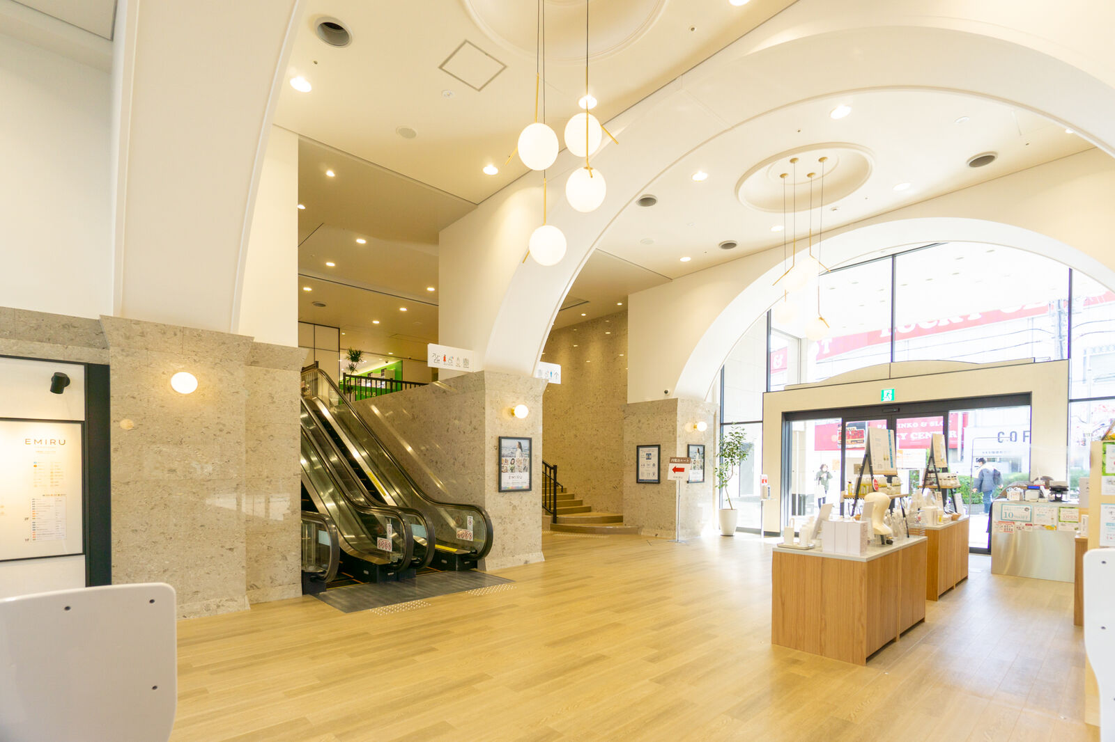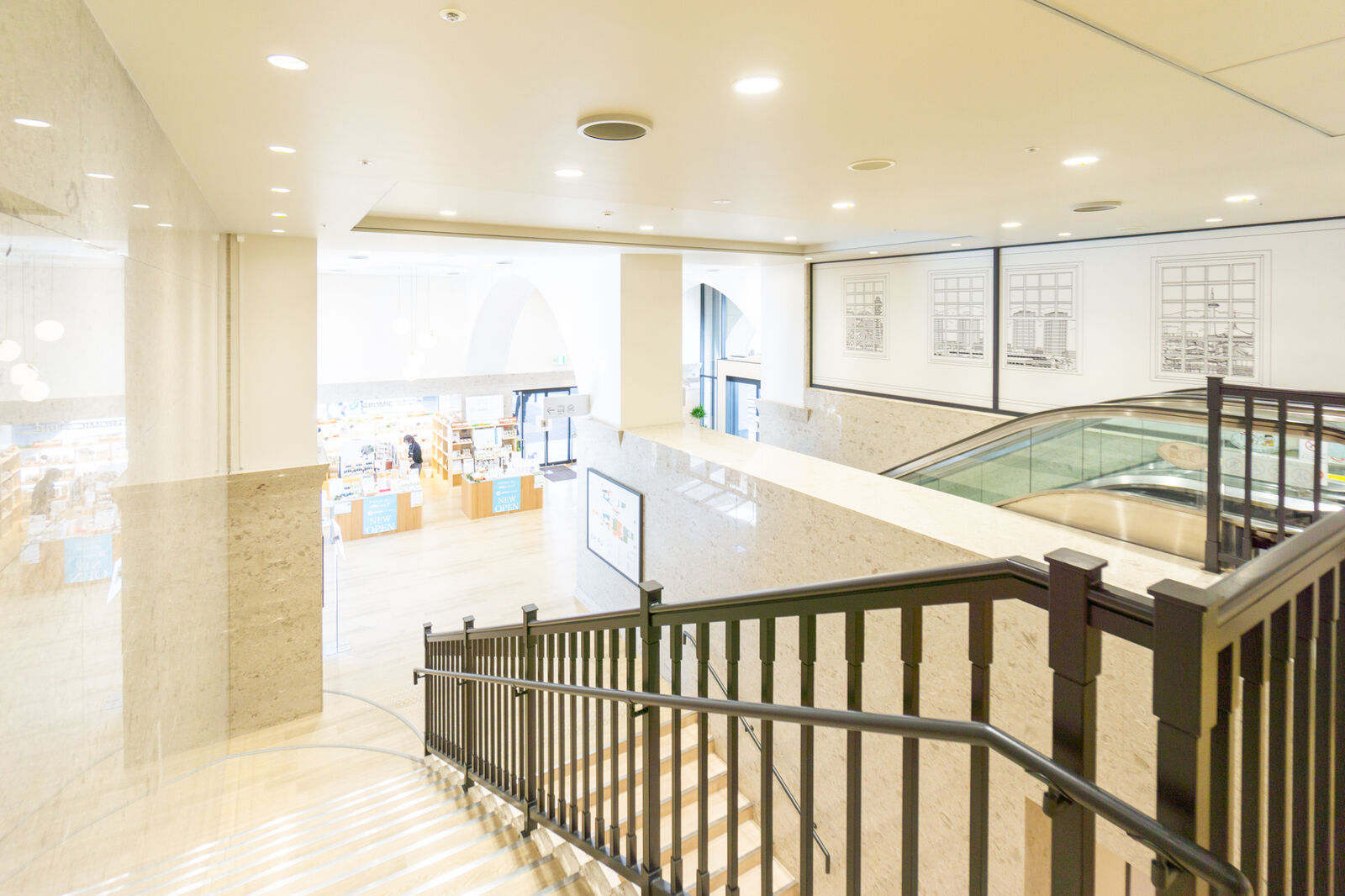 開かれた空間。こちらにはエスカレーターと階段がありまして、