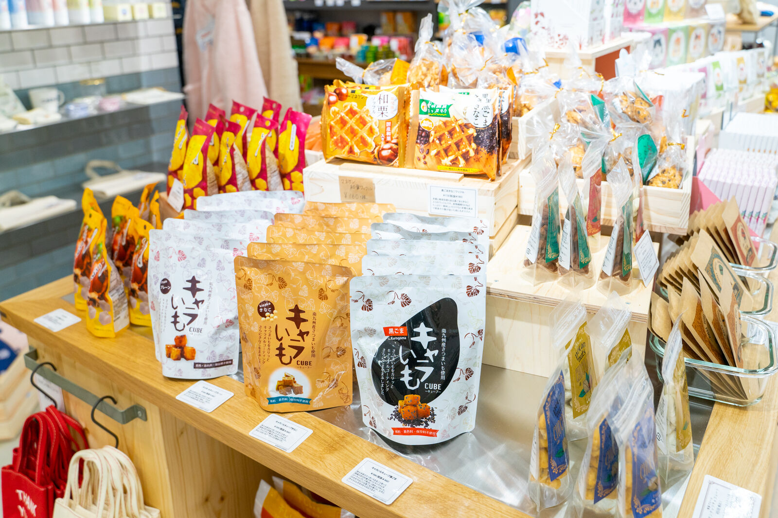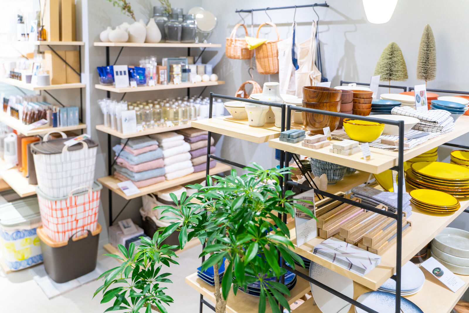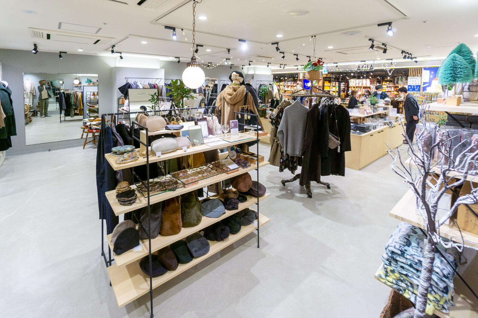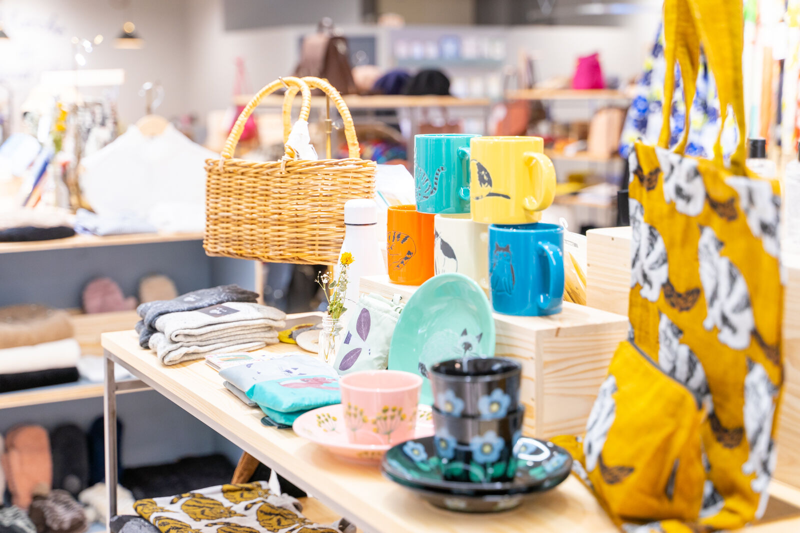 右手には衣服、左手には雑貨などが。