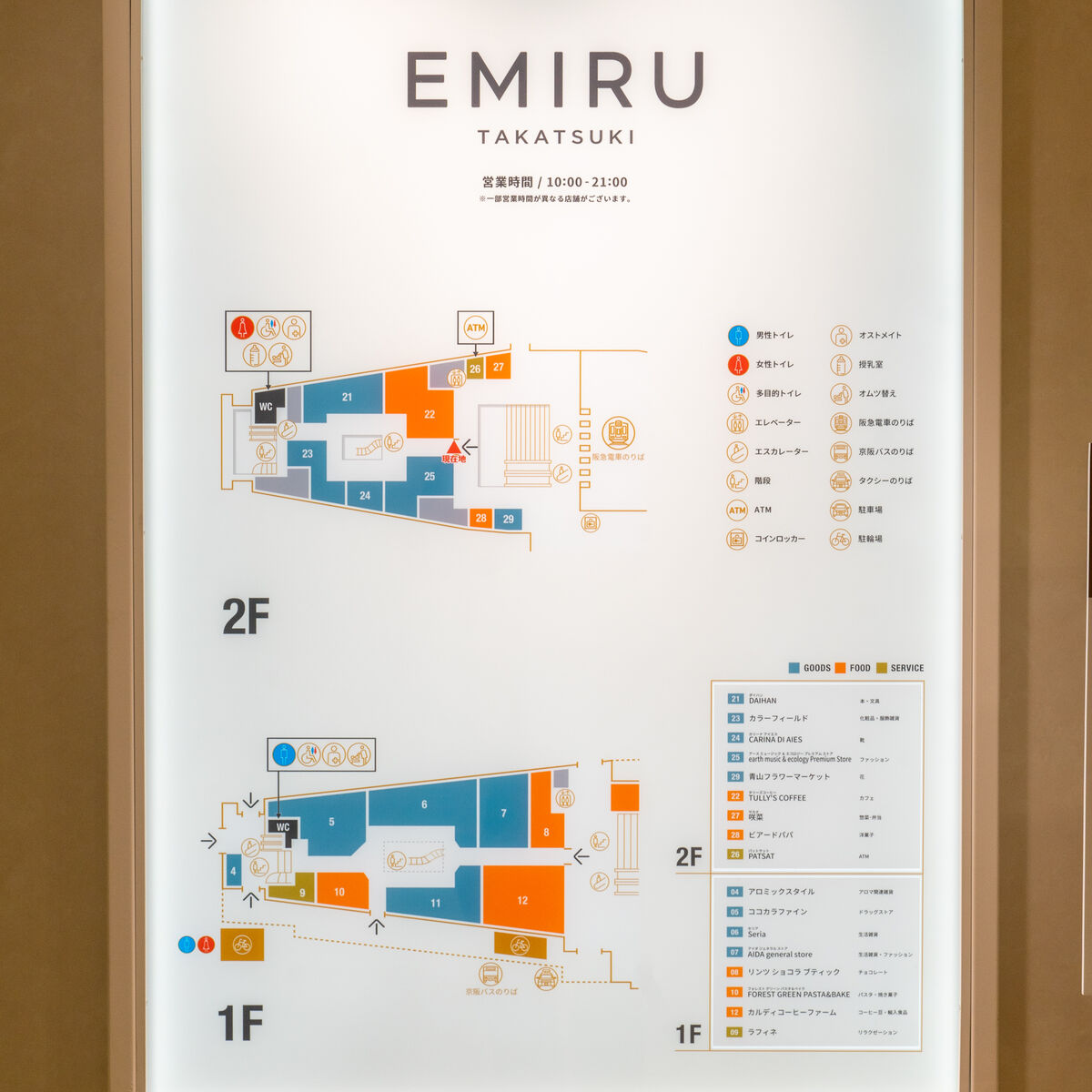 阪急高槻市駅の1階と2階にまたがる店舗で、これは2階のEMIRU入り口。