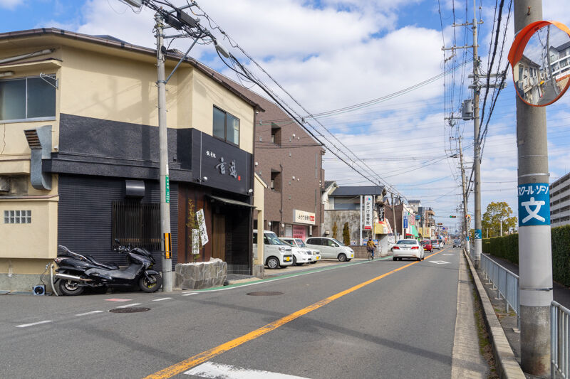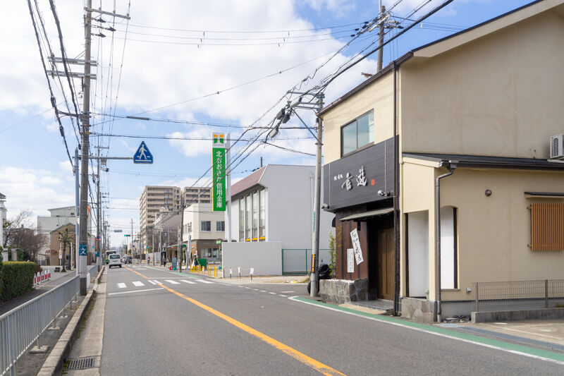 隣には北おおさか信用金庫があり、進んでいくと松原小やマックスバリュなどの前を通って国道170号線の交差点「城東町」にでます。