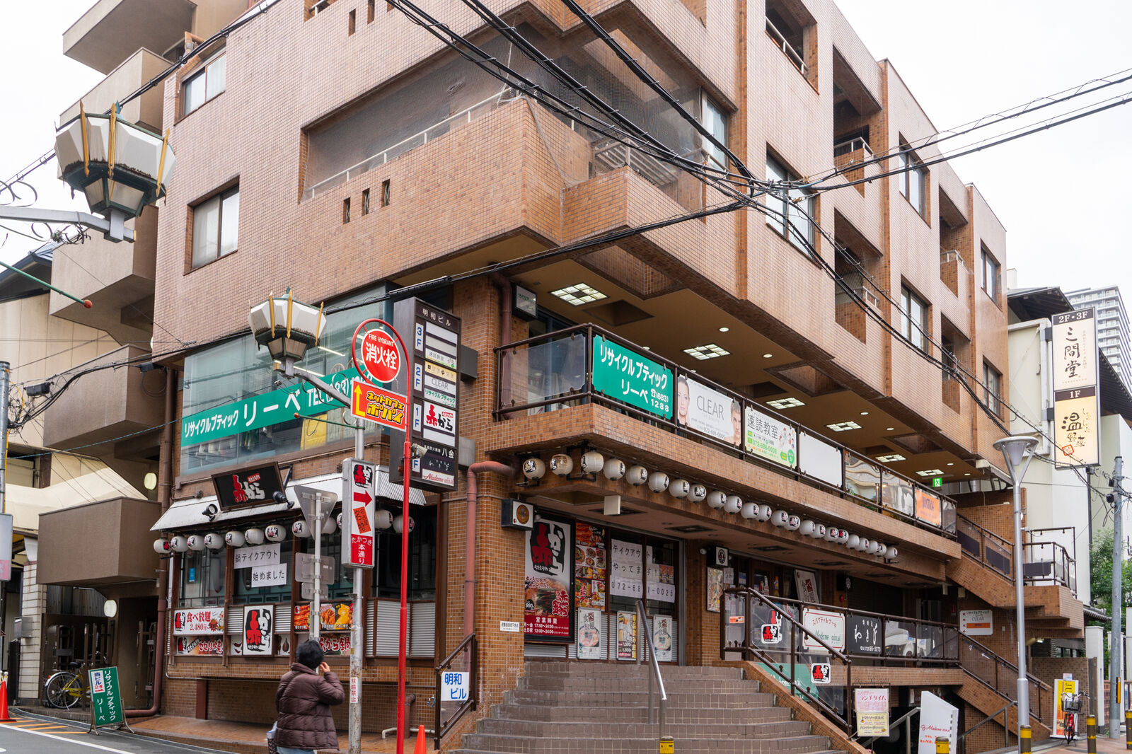 たかつき本通り沿いと書きましたが、お店自体は本通りを向いておらず、こっちにいくとすぐたかつき本通りが横断します。串カツ田中の斜め向かいの建物。