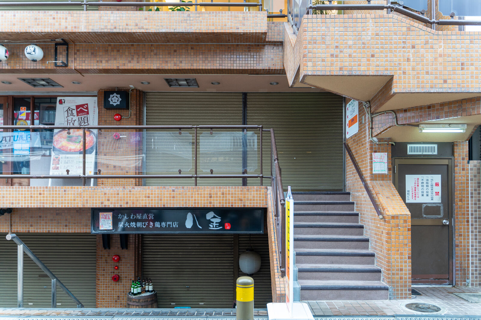 お店の下には炭火焼朝びき鶏専門店の八金があります。