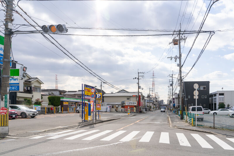 こっちにいくとすぐ交差点がありまして、左にいくと国道170号線の交差点「城東町」に出ます。