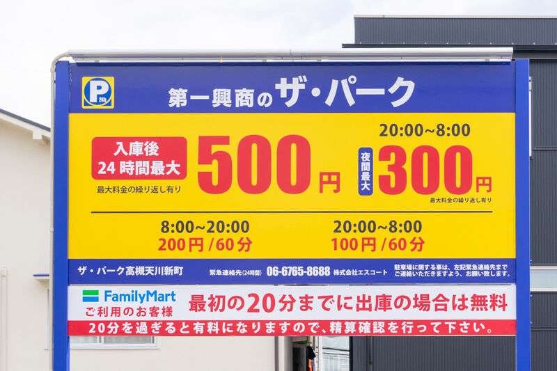 天川新町のファミマの駐車場がコインパーキングになってる。20分までは無料