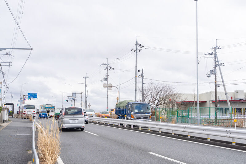 こっちにいくとすぐ枚方大橋。バス停「枚方大橋北詰」がすぐそばにあります。
