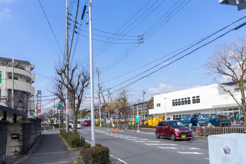 反対方向にいくと名神をくぐってセブンイレブンや薩摩の牛太などの方へ。