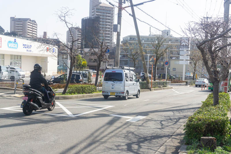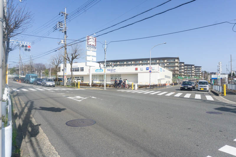 反対方向に進み名神高速道路の下をくぐると、セブンイレブンや薩摩の牛太などの方向へ。