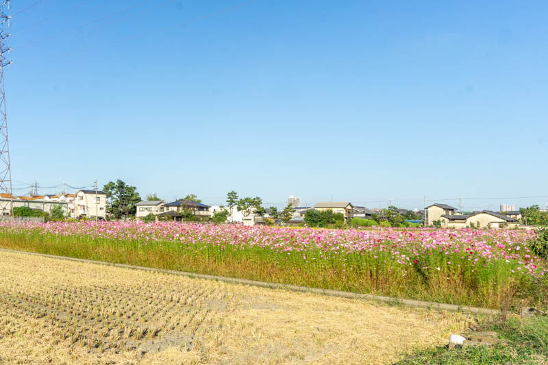 田んぼ、コスモス畑、田んぼ、コスモス畑というような感じで所々にコスモス畑が点在しています。