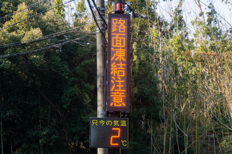 9時過ぎでも、このあたりの気温は2度ほどでして、道路の影の部分は凍っているようでしたので運転される際は十分お気をつけください〜!