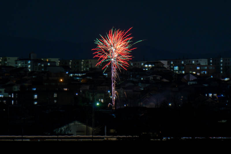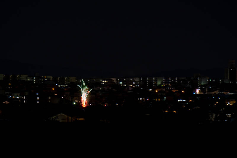 上牧あたりで撮影しましたが、かなり大きなパンっという花火の打ち上がる音も聞こえましたよ〜。
