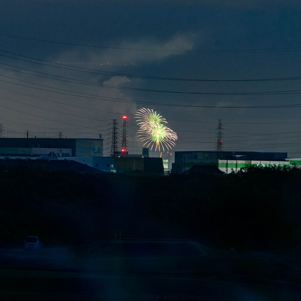 枚方大橋ちかくの大塚町あたりから「第35回 なにわ淀川花火大会」が見えています。
