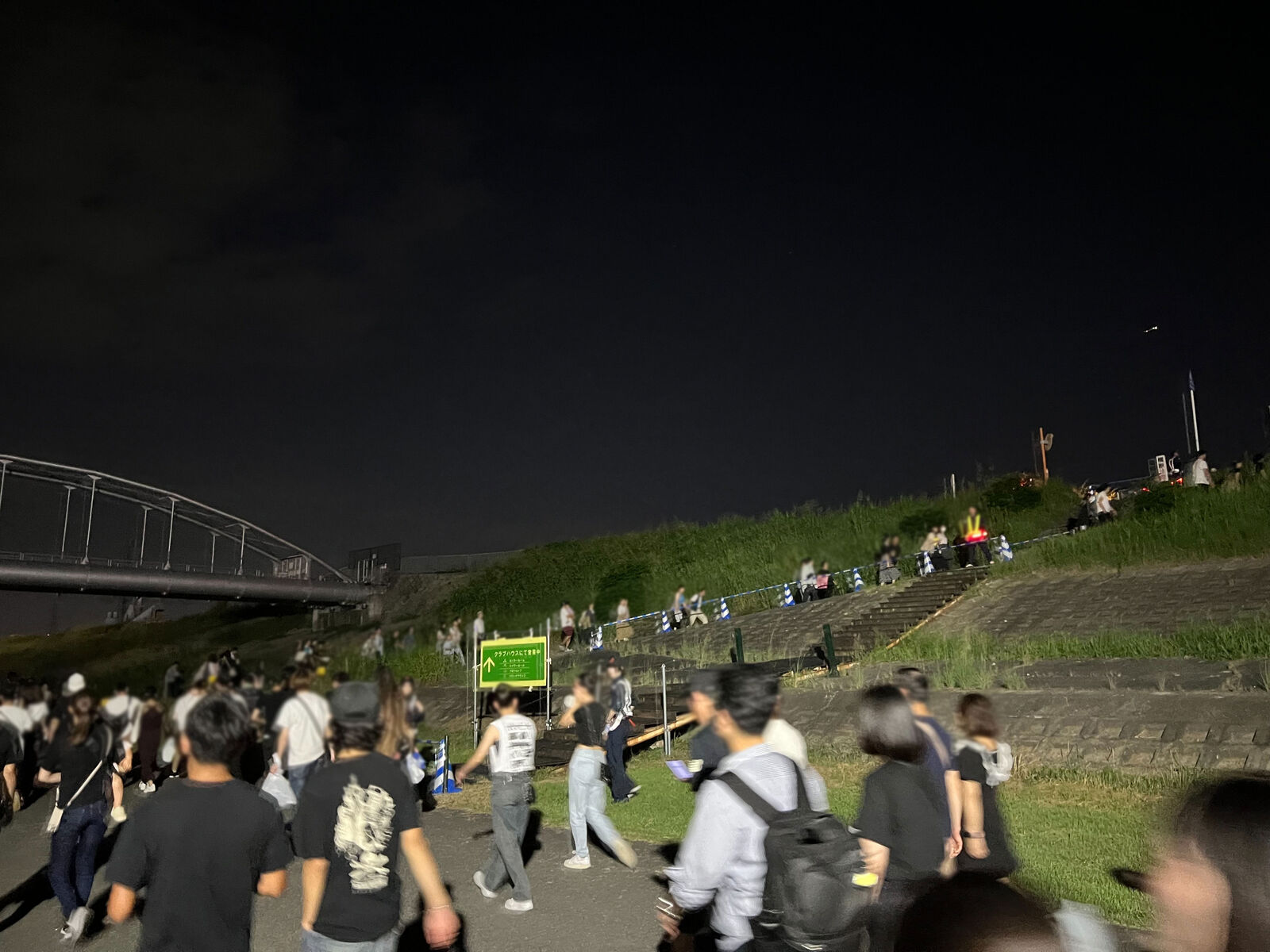 帰る人たちでかなり混雑しています。高槻方面はこのスロープを、
