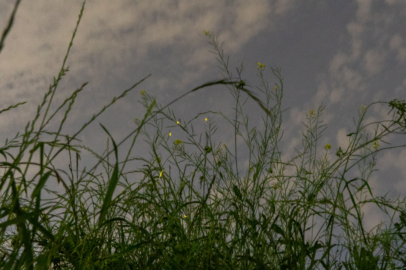 下部の黄色い光たち、それがヒメボタル。ちなみに肉眼で見た時は白色でした。