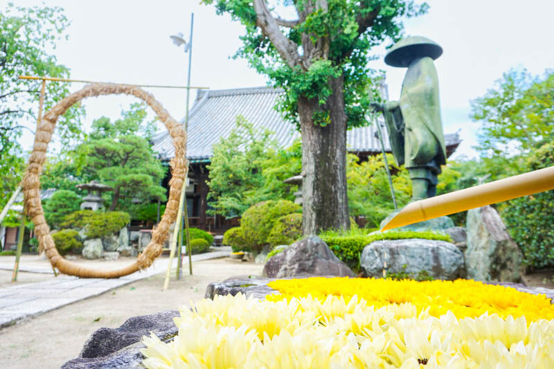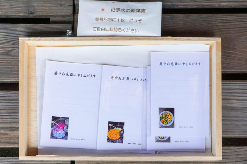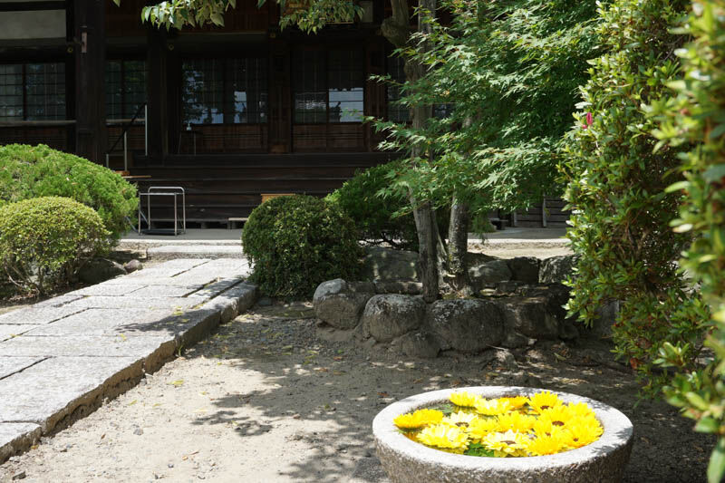浄誓寺の花手水は城北通にある石田花店が奉納しているものだそう。石田花店は野見神社の花手水も奉納していて、過去にも何度か記事にしています。