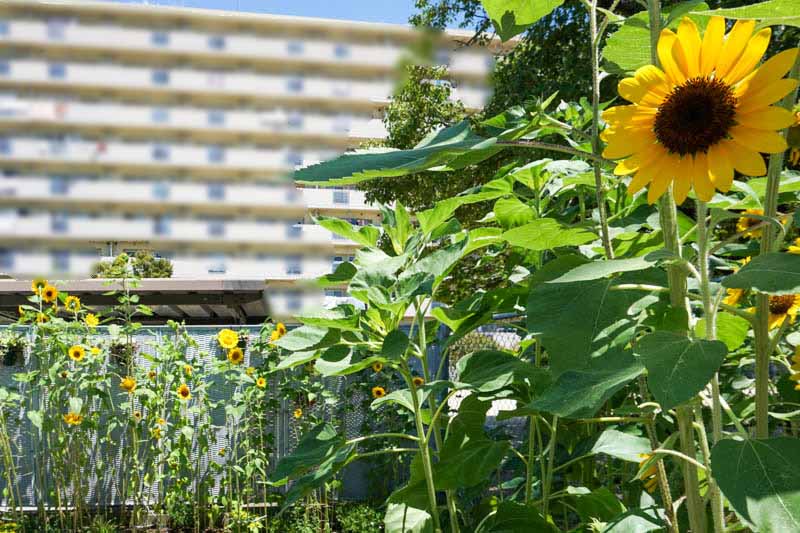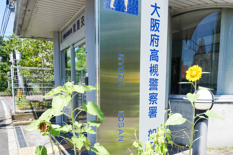芝生町にある如是交番で見つけたひまわりの写真です。