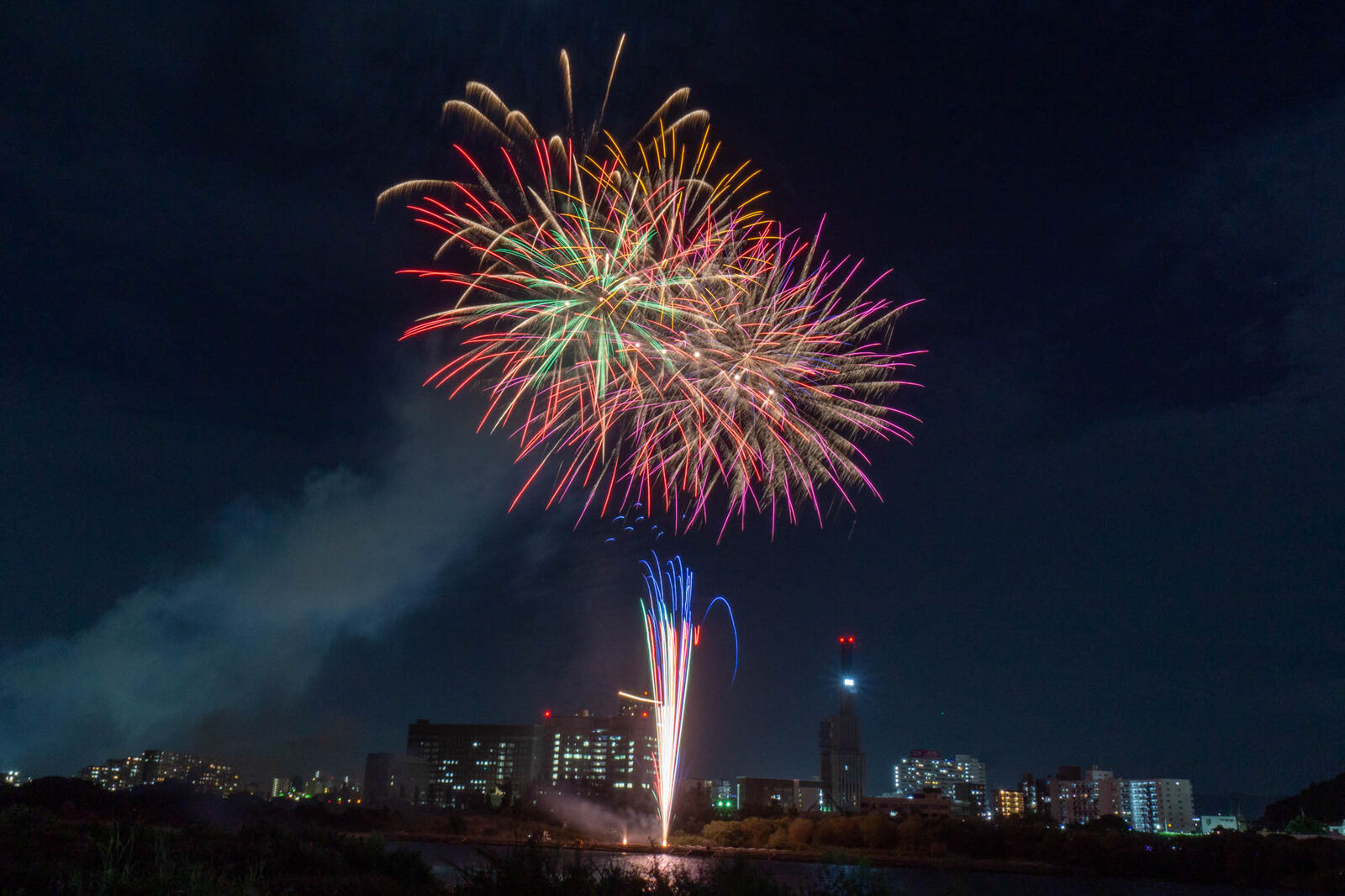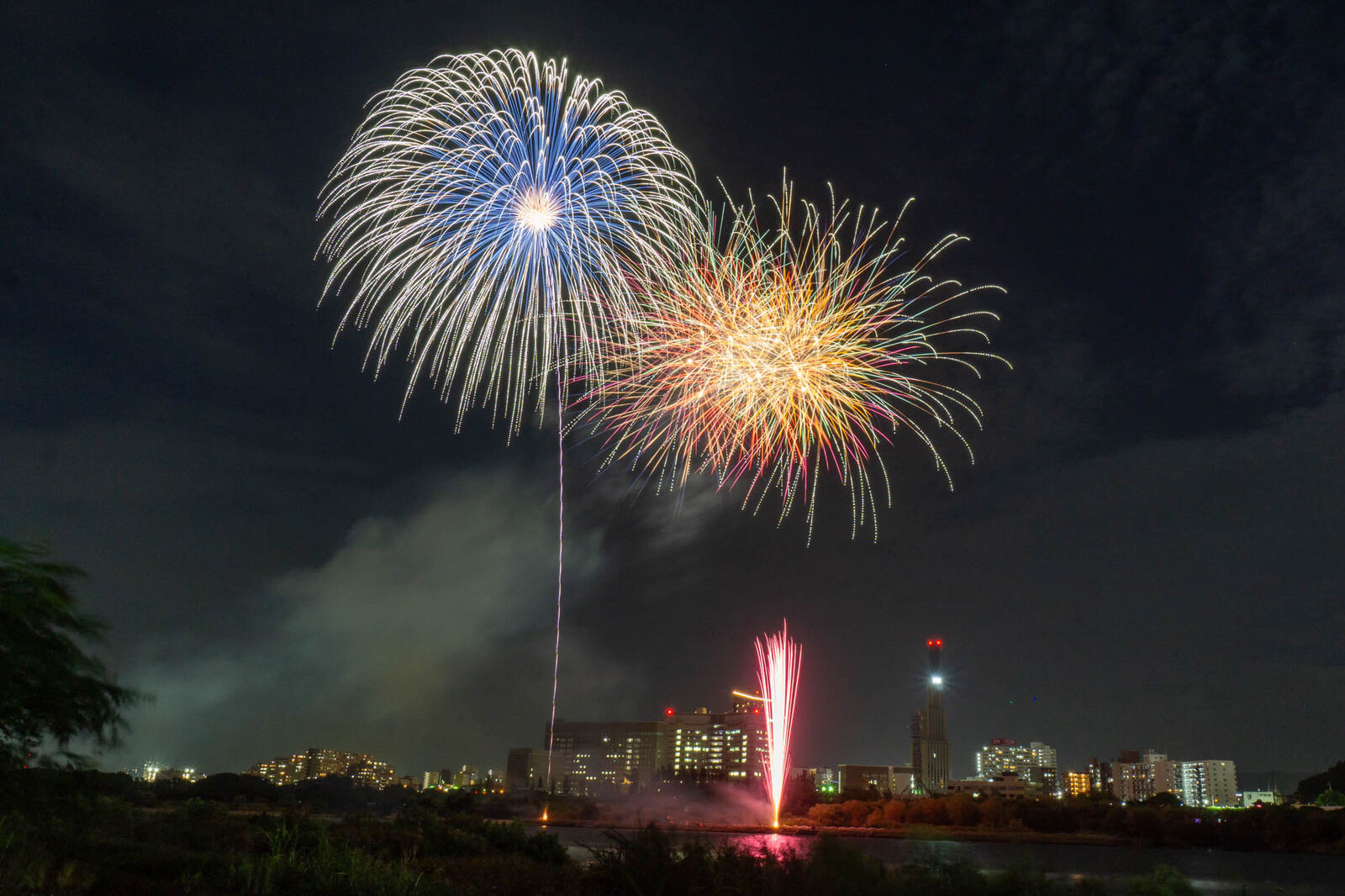 いま枚方大橋ちかくで「第3回 水都くらわんか花火大会」の花火あがってる。フォトも募集中!