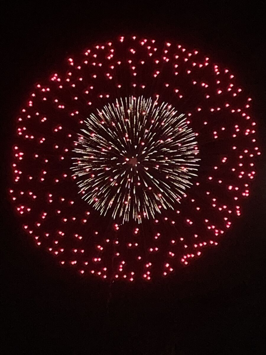 たまにあがる超大きな花火は、カメラの画角から見切れるほどの高さまで上がっていました〜!