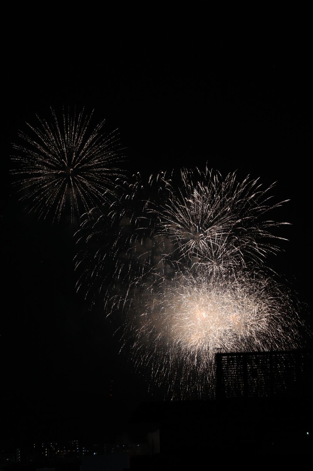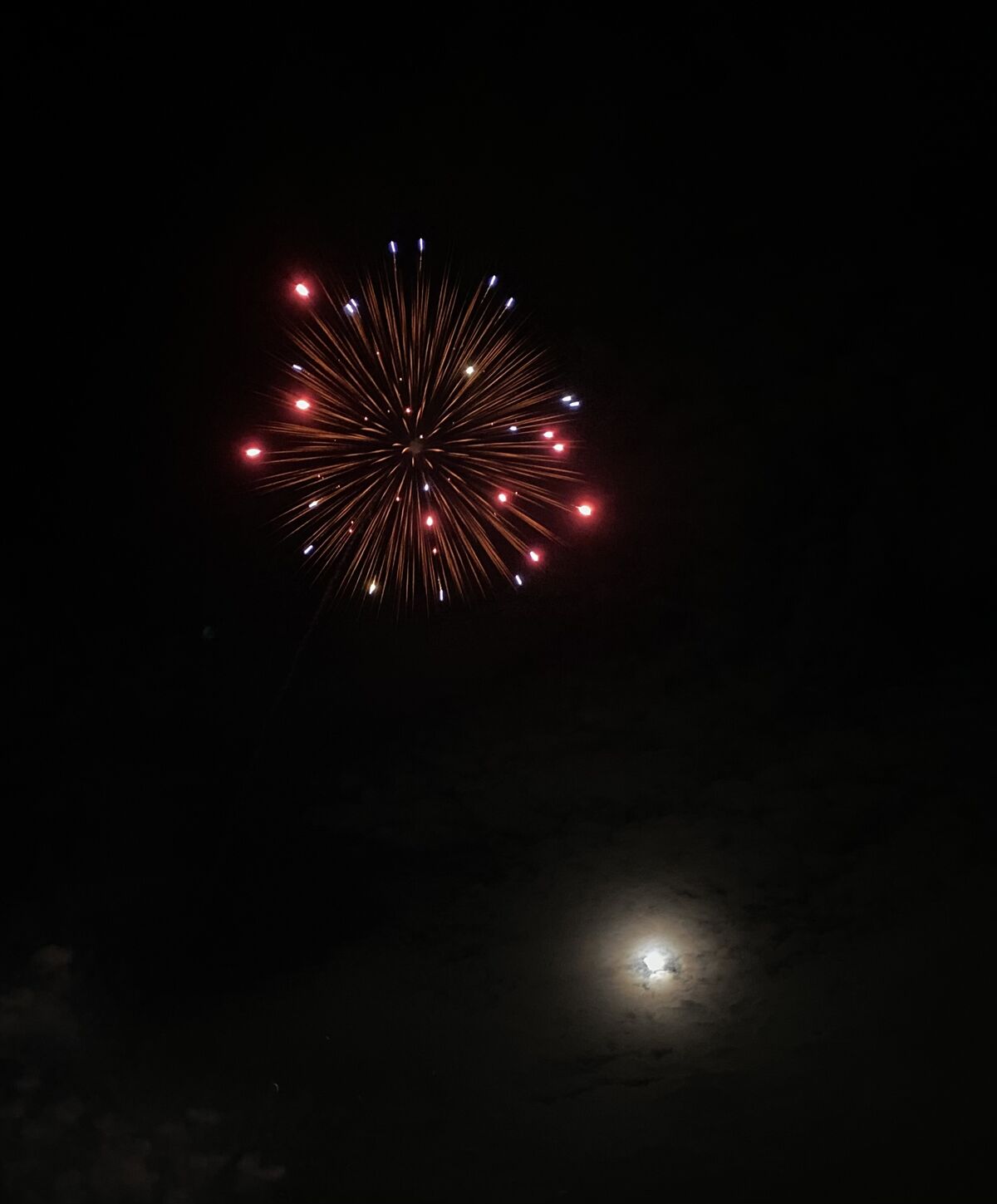 打ち上がってる花火と月を一緒に撮りたいなと思い撮りました。