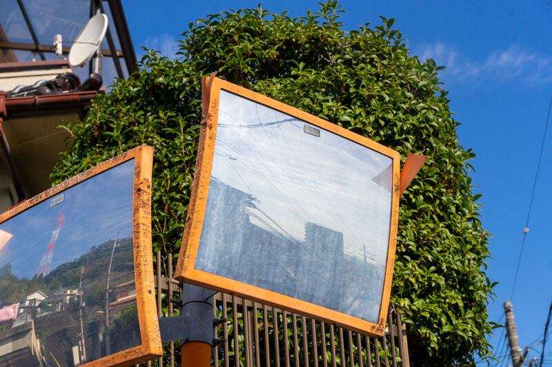 高槻市神内から島本町桜井にある四角いミラーを撮影した写真です。