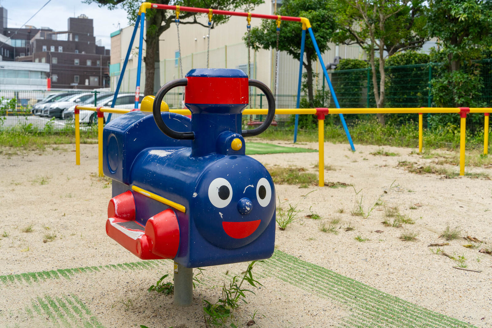 ちなみにブランコのそばにはホラ、子供が大好きなアンパンマンに出てくるSLマンみたいなやつもいますよ。
