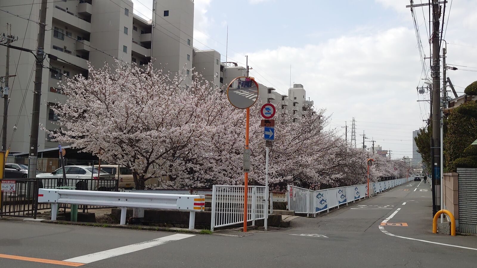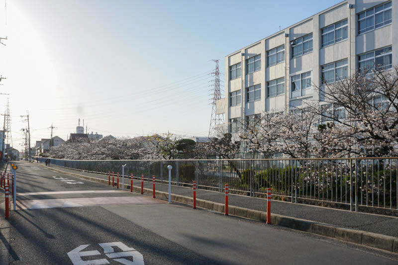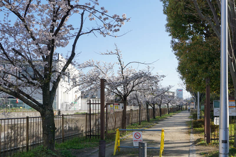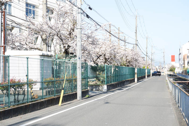 川添公園に続く桜並木(寿栄小学校前)