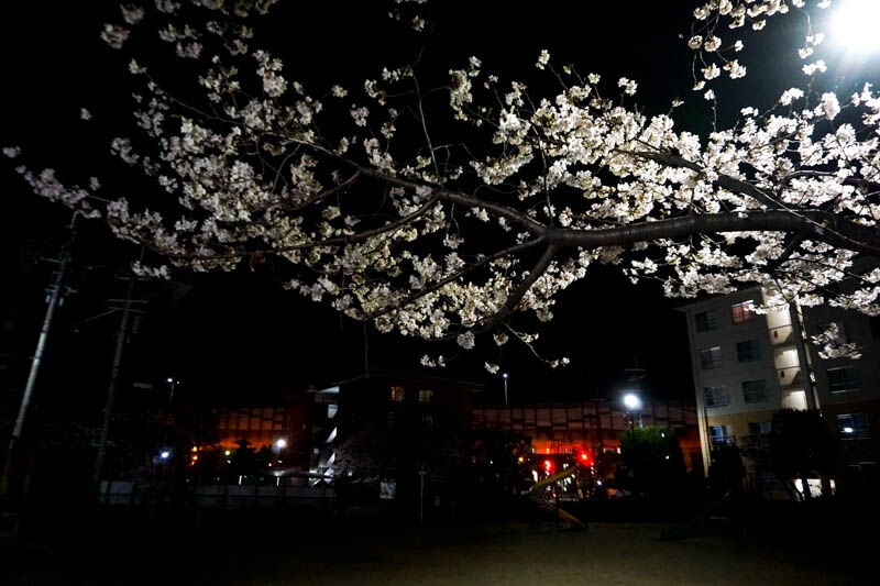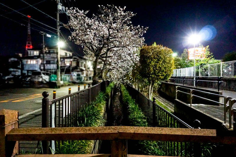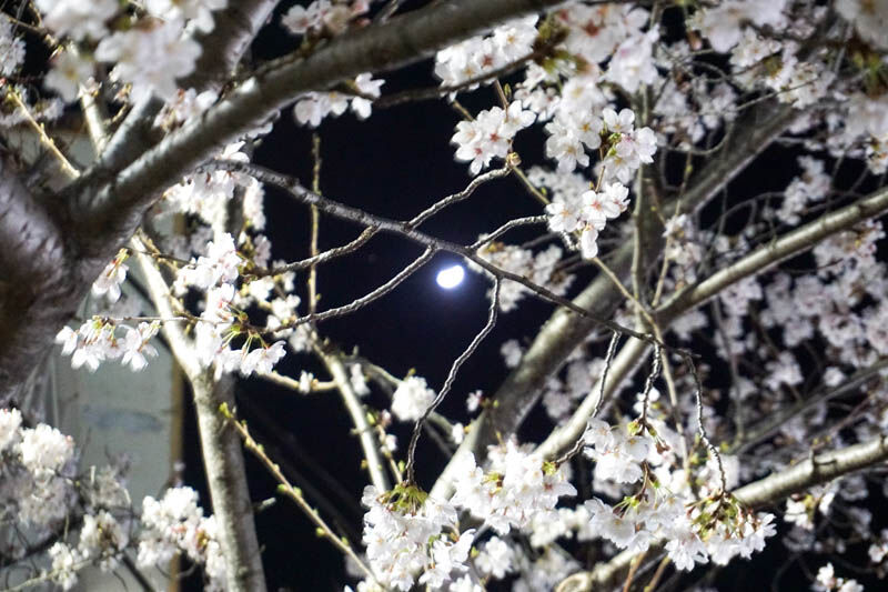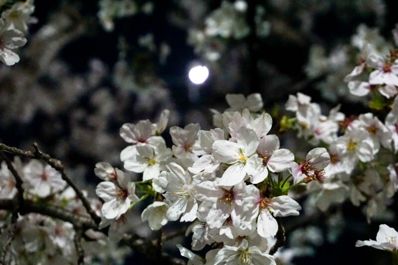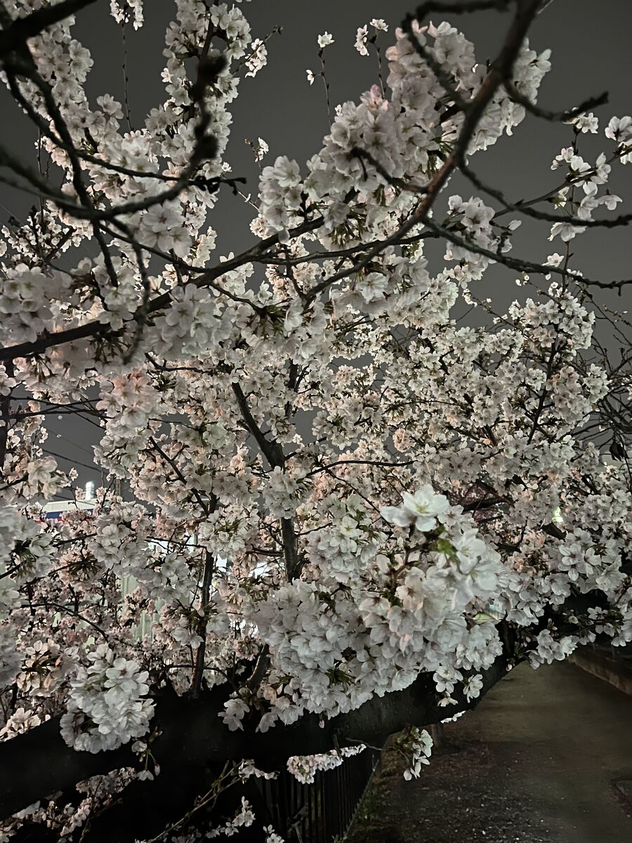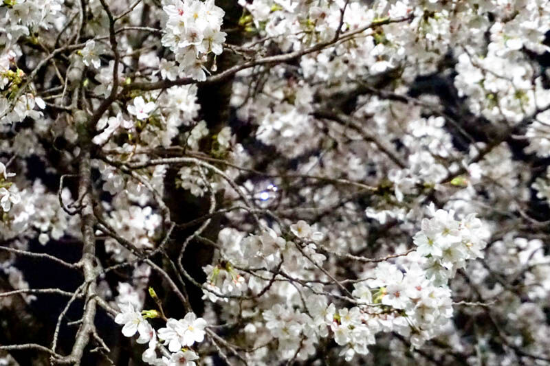 ここは昼間でもとってもきれいだなと思っていたのですが、満開で今が見頃。公園のような広場ではありませんが、ベンチもあるのでゆっくりお花見できます。