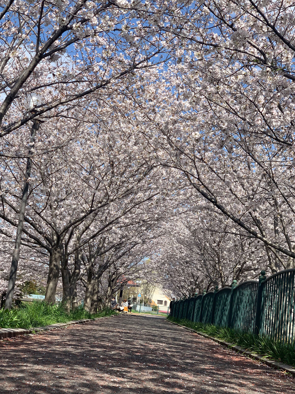 毎年桜のトンネルが素晴らしいです!天気も良く、青空に映えていました。