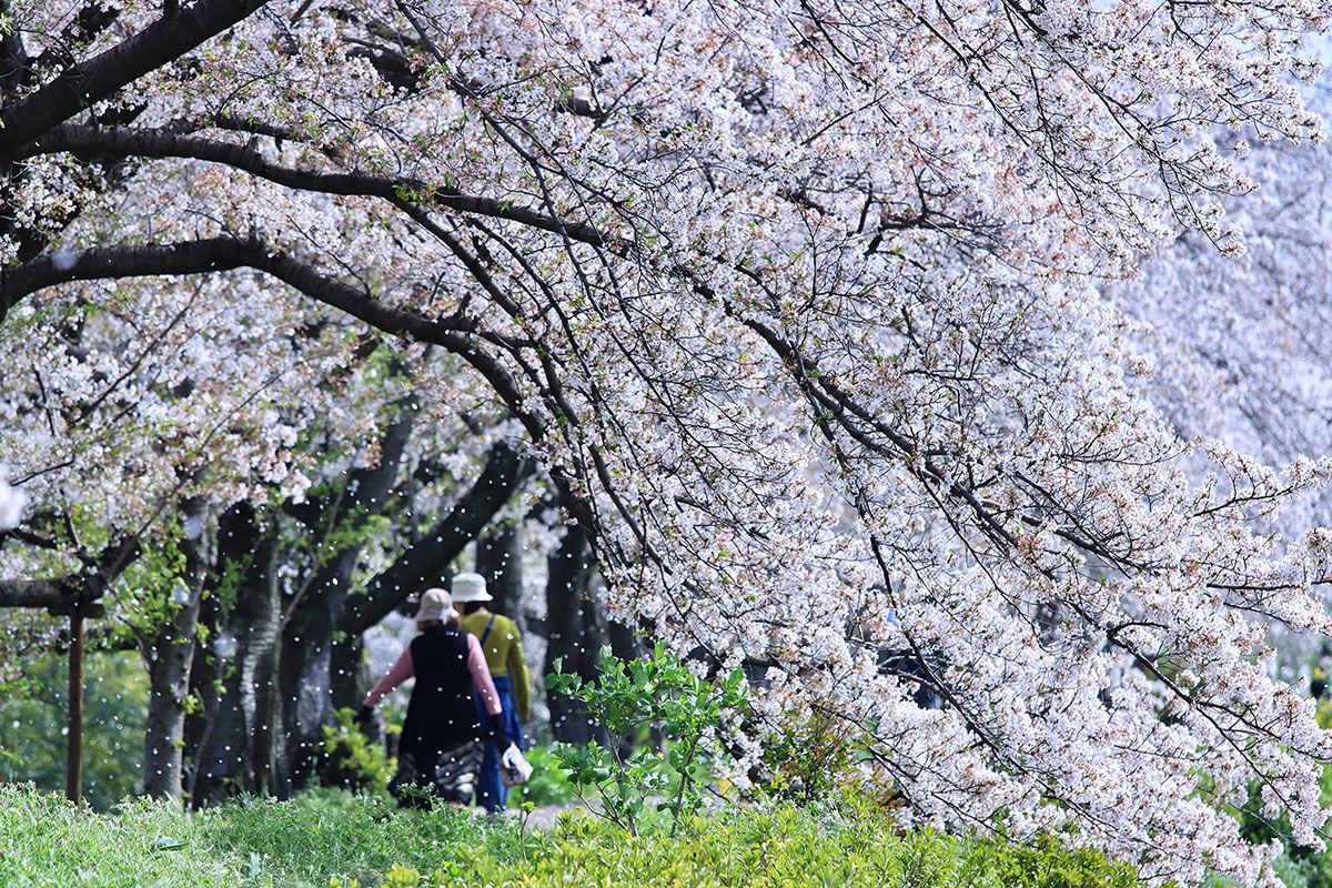 コロナ禍のため、3年ぶりの新川の桜堤。風が強い日だったので、桜吹雪が舞う中、とても綺麗な桜を見ることができました。
