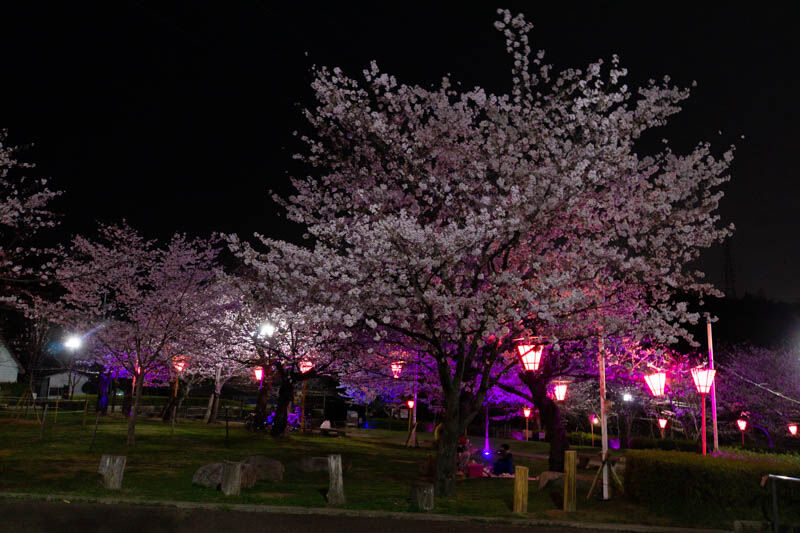 この桜は毎年いつもきれいに咲き乱れます。昼間と夜撮影しました。