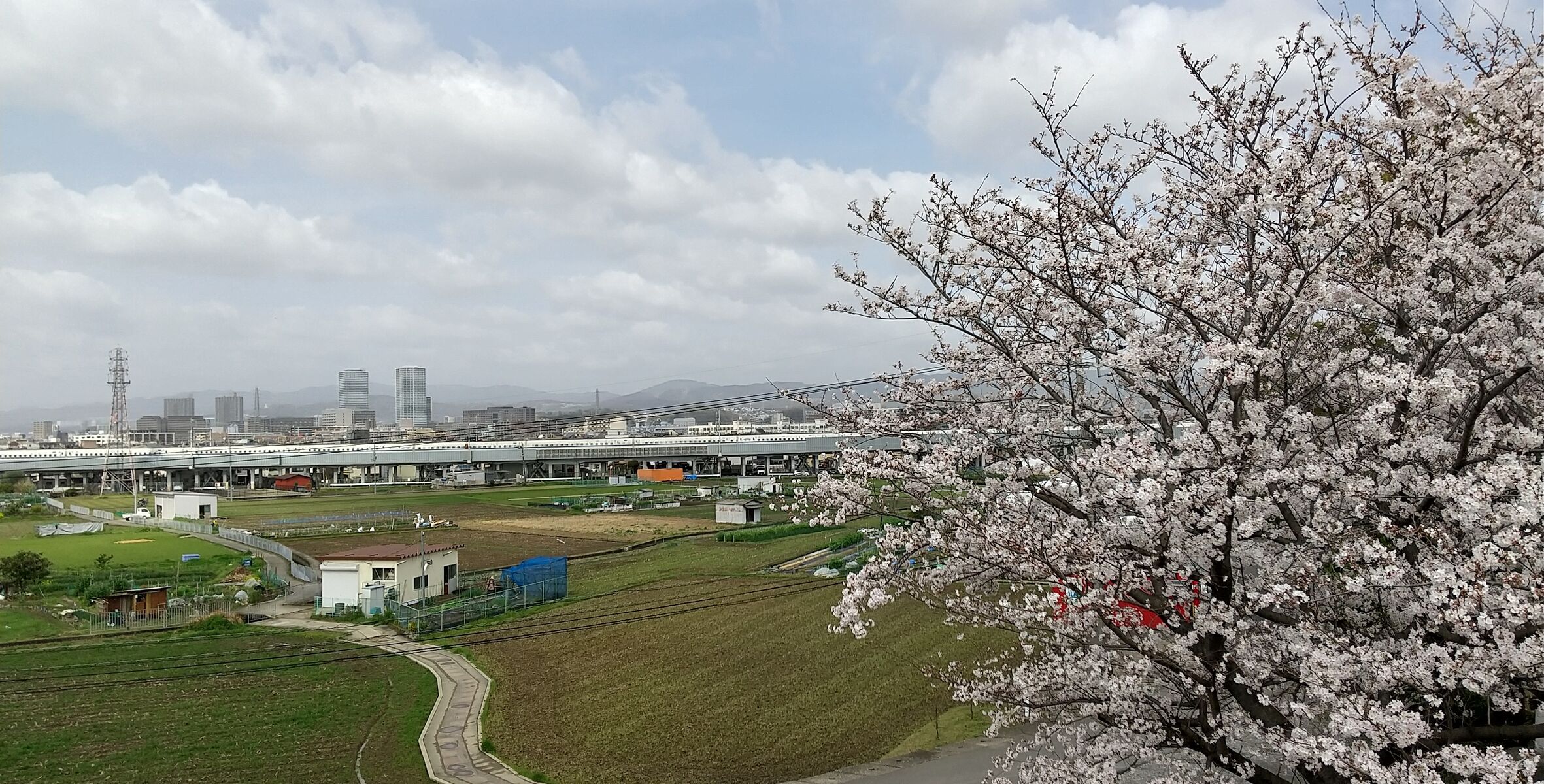ここから新幹線を眺めるのが好きなので、そこに桜が咲いた、という感じです。