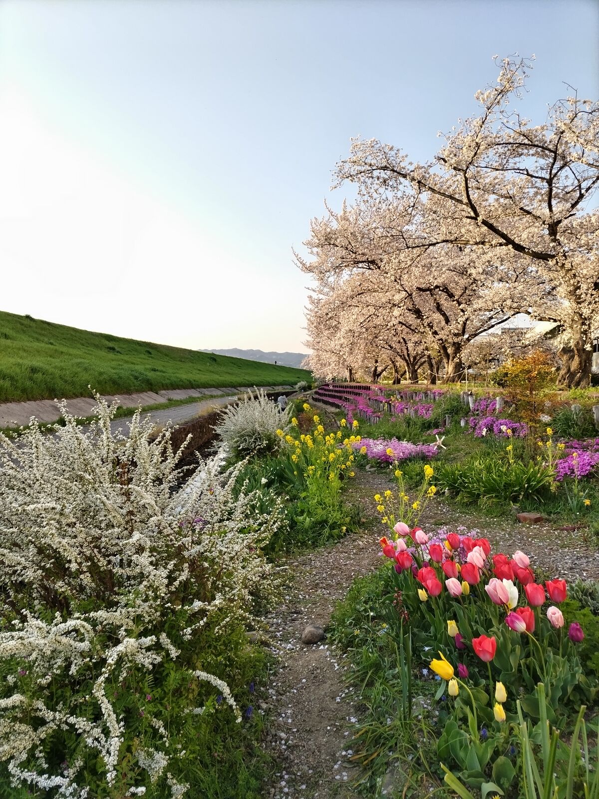 3月31日新川桜堤の桜満開です。もう桜吹雪になっていて、道にも川の中にも花びらが落ちて、ピンク色です(*^^*)芝桜は、これから満開になりますね。桜並木の南側奥まで行くと、芝桜が絨毯のようになってる場所があって、綺麗です。蓮池あたりも、芝桜の段々や、パンジーが咲いて可愛くなっていましたよ♪