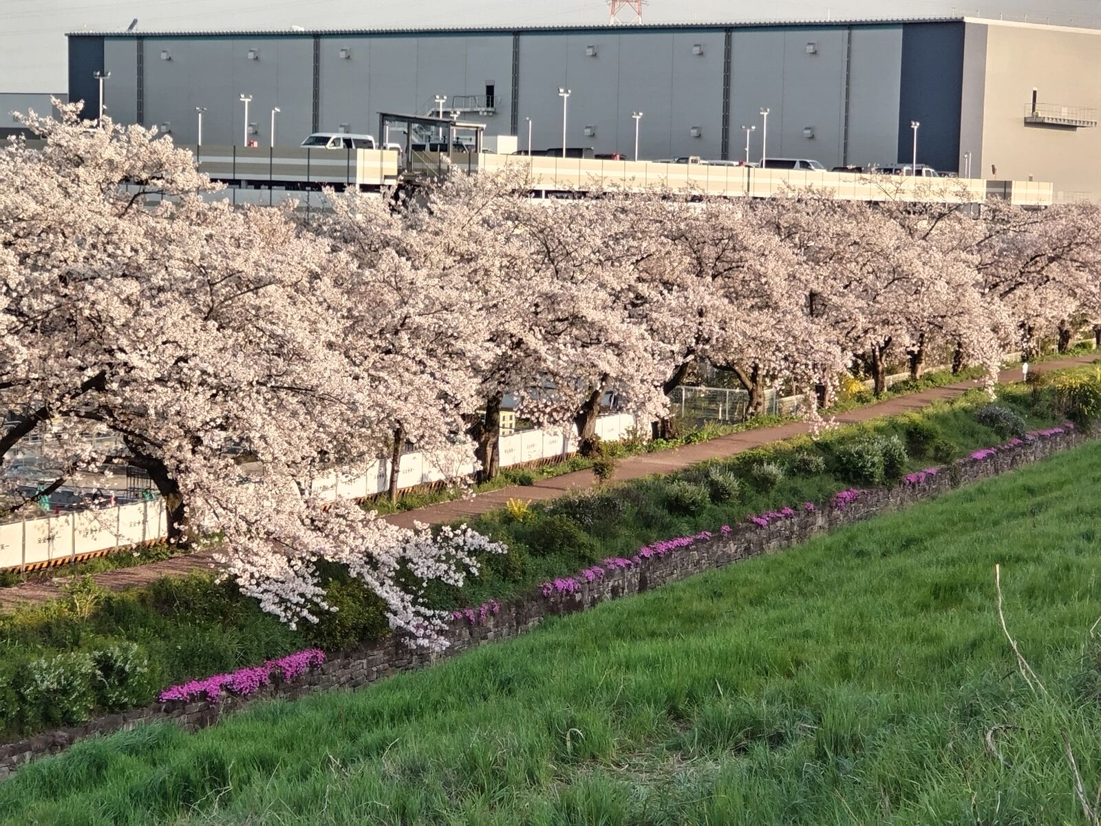 全体で見るとそんなにですが、下に降りてみると結構咲いていました。白・ピンクなどいろんな色があって、散歩にぴったり。