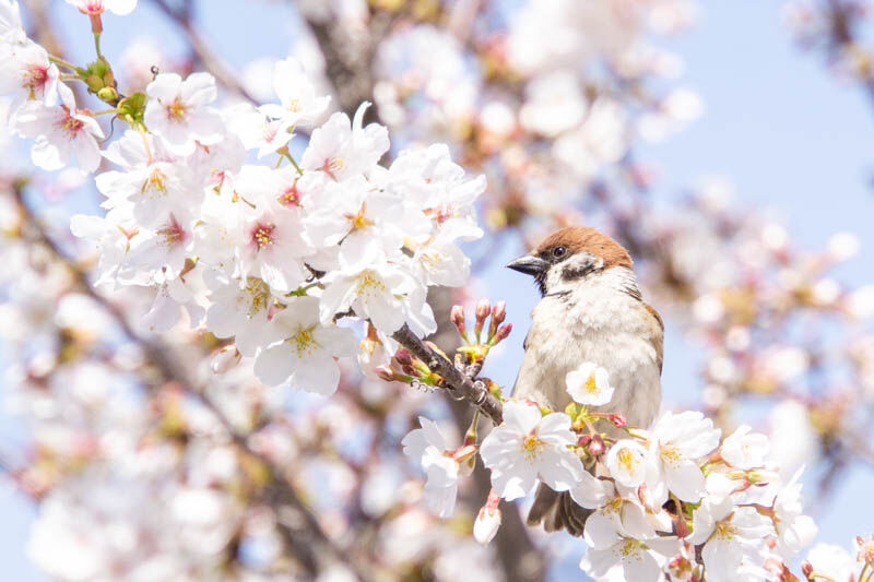 圧巻の桜のトンネル!毎年きれいですね!散歩されている方もたくさんいらっしゃいました。雀の横顔が凛々しい(笑)