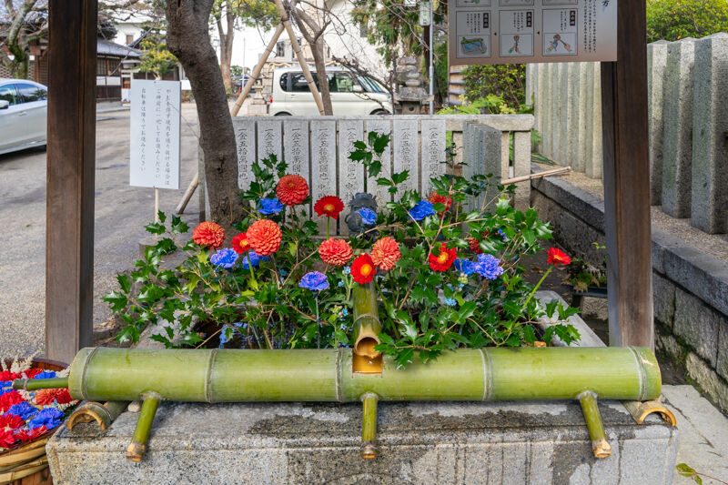 つづいては野見神社へと、手水舎の花手水が節分仕様になっているという情報をうけて見に行ってきました。