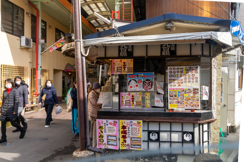 芥川郵便局の向かいではお寿司屋さんに行列が。恵方巻ですね。