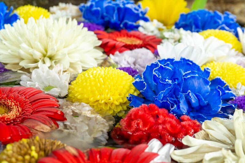 石田花店のInstagramによると、五色短冊をイメージして七夕カラーだそうで、五色とは、中国の陰陽五行説に由来する、青(緑)・赤・黄・白・黒(紫)のことなんだとか。