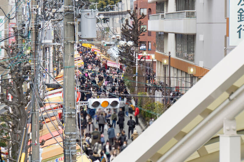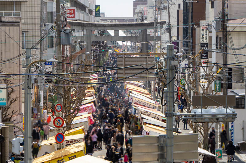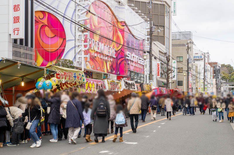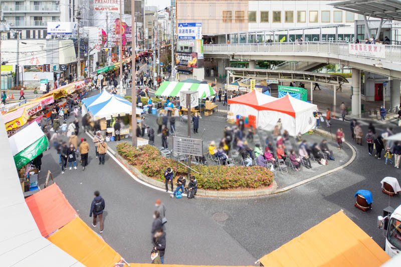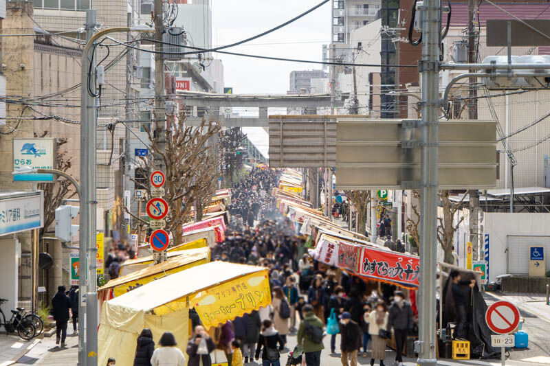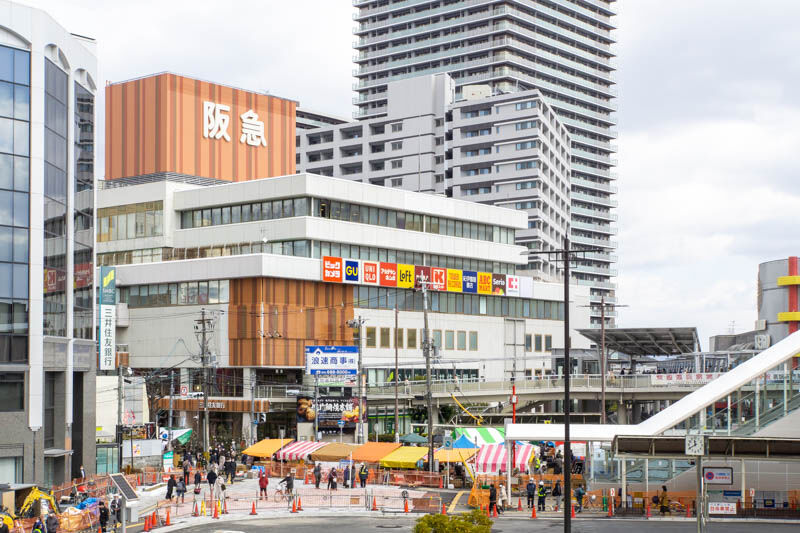 高槻阪急あたりは片側のみ屋台が並んでおり、