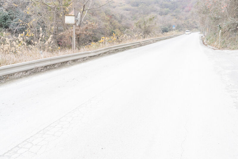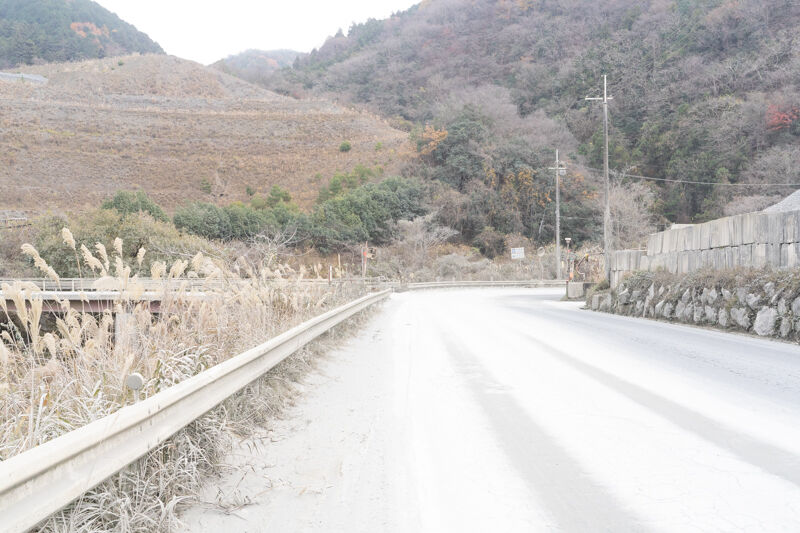 道路だけじゃなくて、周りの植物全てにも白い砂が積もっていて、ちょっとした雪景色みたいな。