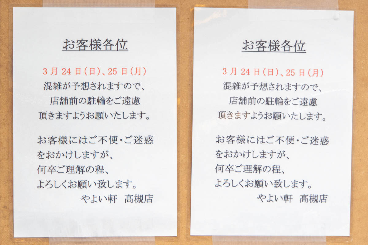 やよい軒高槻店の「高槻やよい誕生祭」前日は雨。最新サインがあった【たかつーフォト】