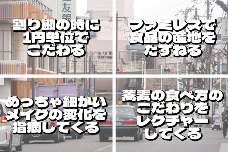 細かい…というかこだわりが強いのを人に押し付けるのがダメな感じでしょうか。そばの食べ方……思い当たる!(ヤバイやつ)