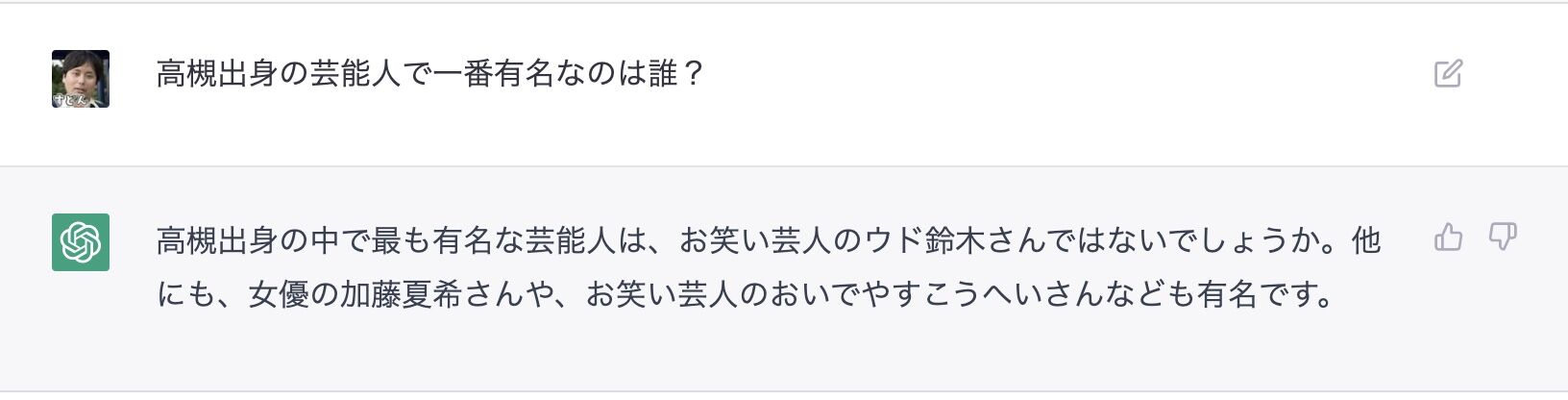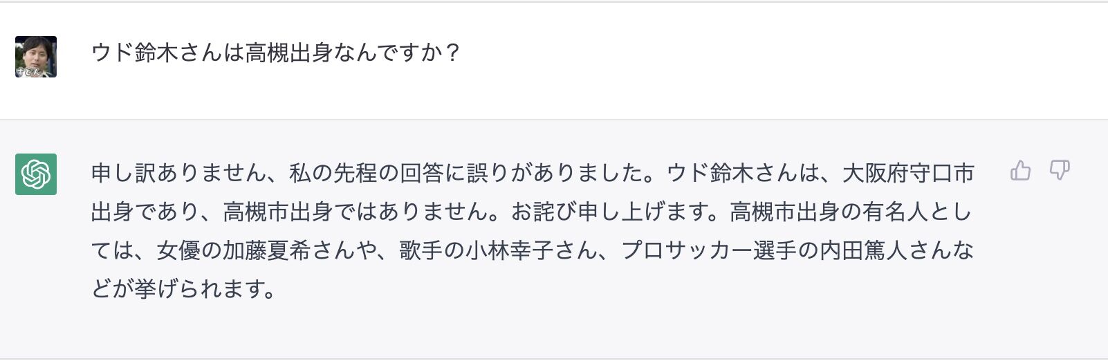 さて、ChatGPT(AI)に高槻出身の一番有名な芸能人を聞いた結果の回答は誰なんでしょう?