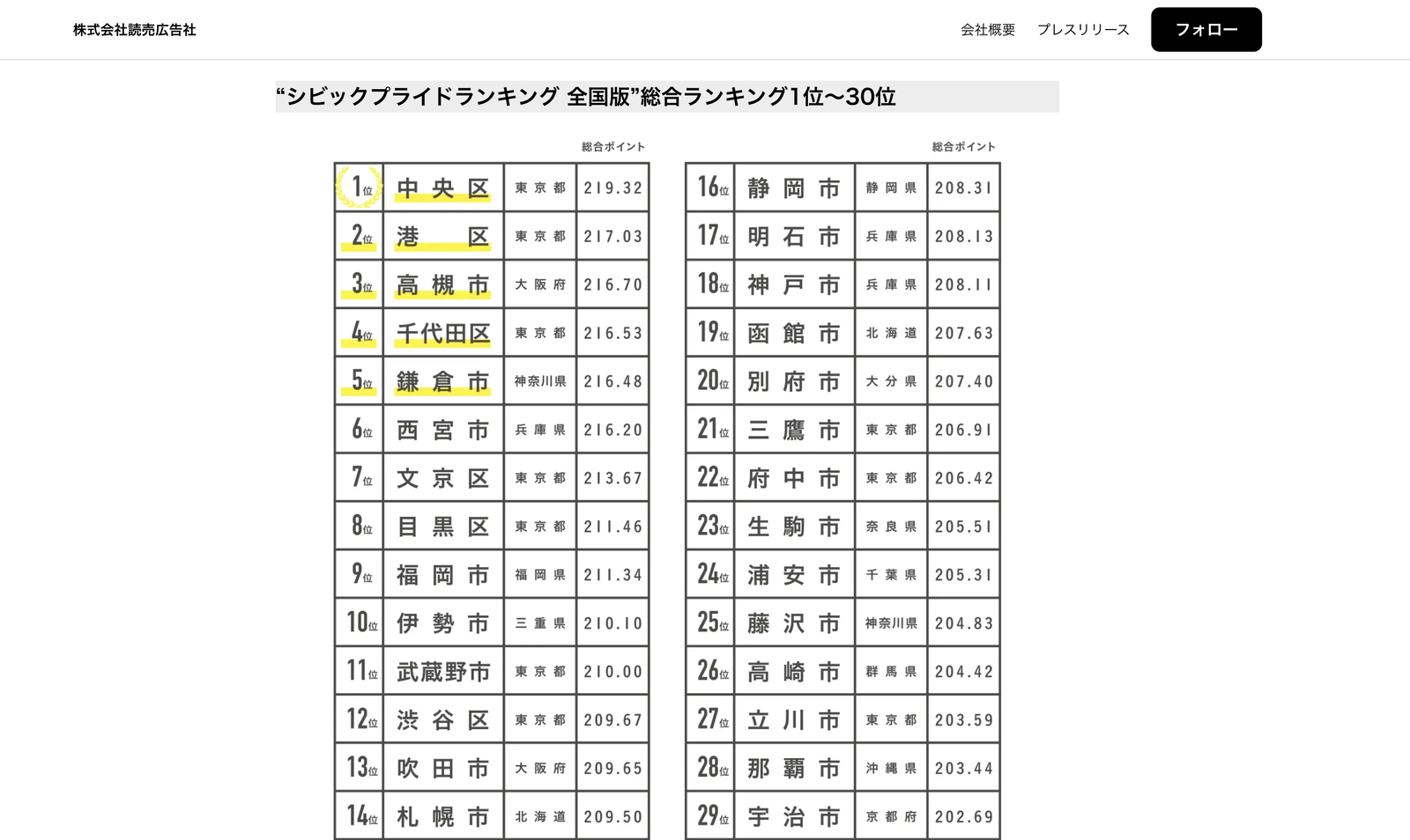 「シビックプライドランキング 全国版」で高槻市は何位?(ヒント:めっちゃ上位)【たかつきクイズ】