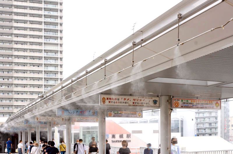 (クイズとは関係ないヒートアイランド対応のために設置されているJR高槻駅南側の「ドライ型ミスト」)