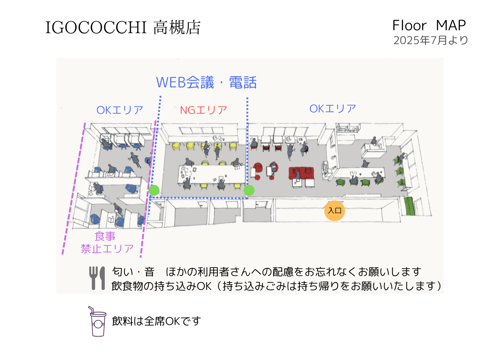 静かに作業したい方向けのゾーンとなります。