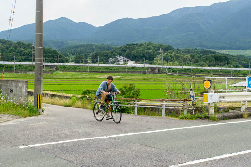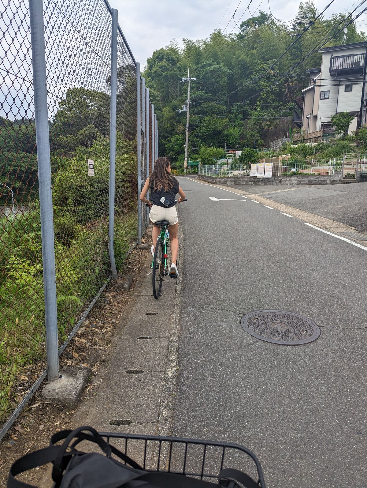 ロードバイクのガーサンに対して、圧倒的不利なママチャリのリナティ。さすがに自転車を交代してもらいました。さすがにね。