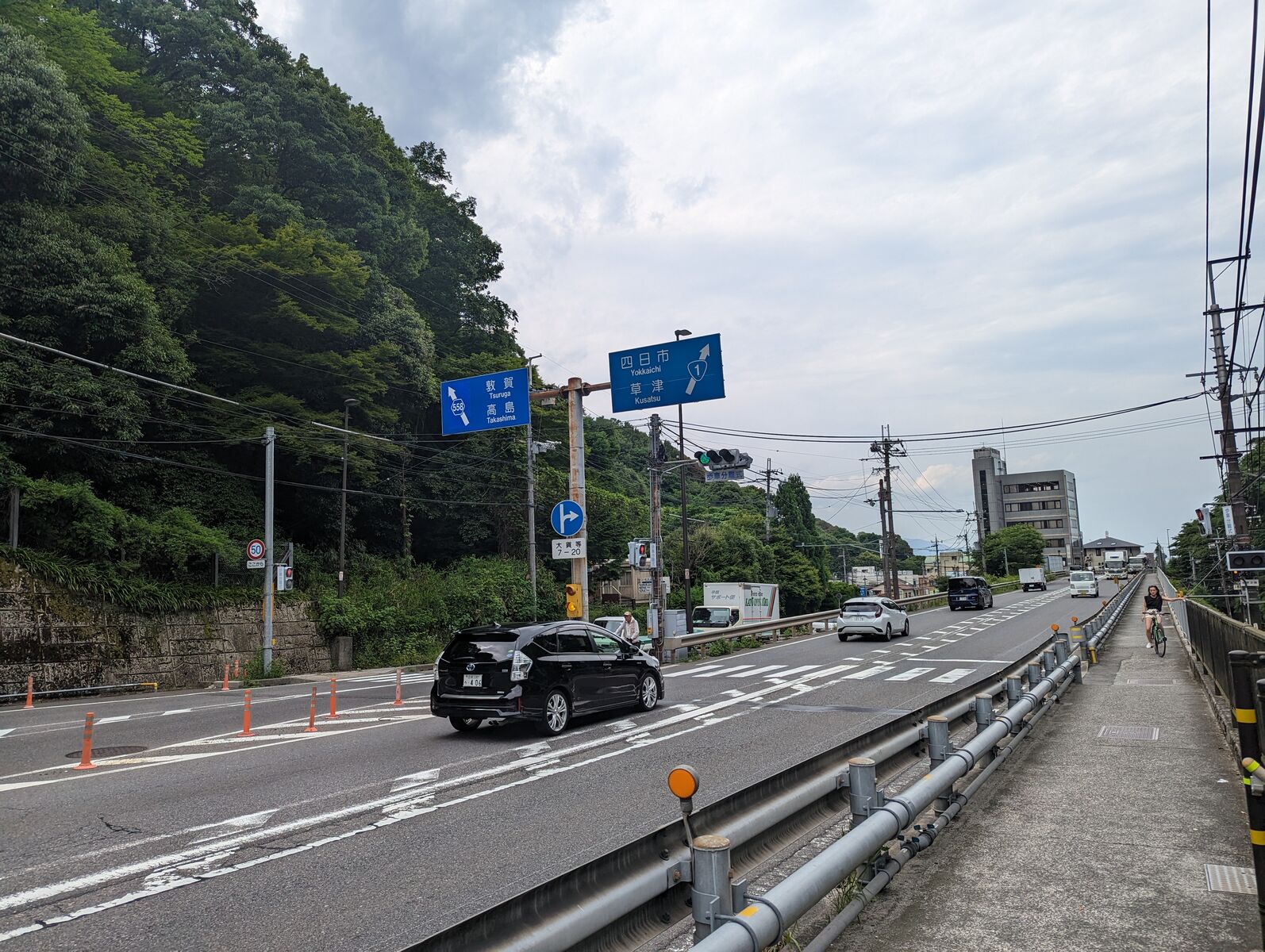 右に行くと草津方面、左に行くと敦賀方面なので、琵琶湖を周る方向を計画と間違えると取り返しの付かないことになります。というか引き返すか、計画と逆方向周りに変更せざるを得ません!