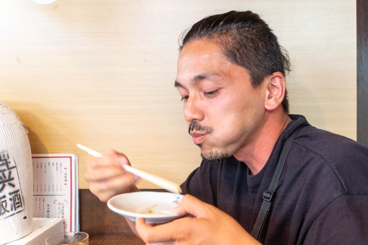「お〜気に入ってくれて良かったです!この見た目からなかなかはじめの一口に勇気がいるんですけど、食べてみるとこの味にハマっちゃうんですよね!」
