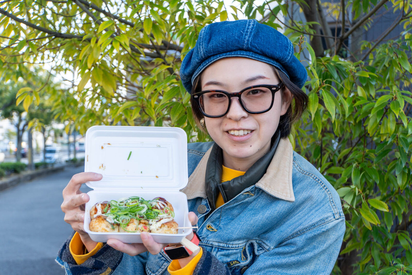 「ホンマにこの値段でいいんですか!無料トッピングのネギもシャキシャキで生地もふわふわで美味しい〜!」