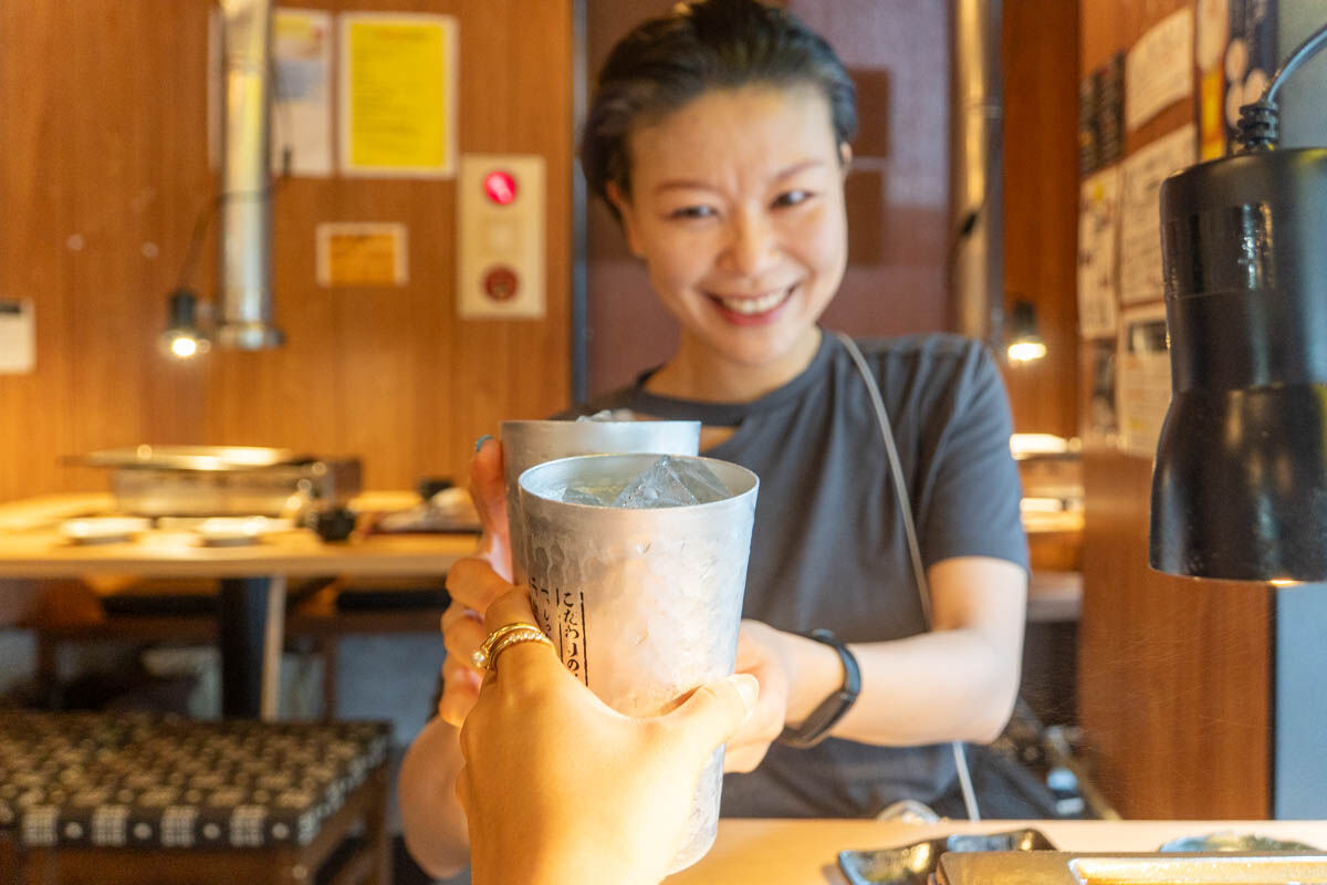 「鶏肉なのにプリプリ食感ですね…!どっちも味つけがしっかりしていて想定よりお酒が進んじゃったんですけど、2杯目どうですか?せっかくのハッピーアワーですし!」