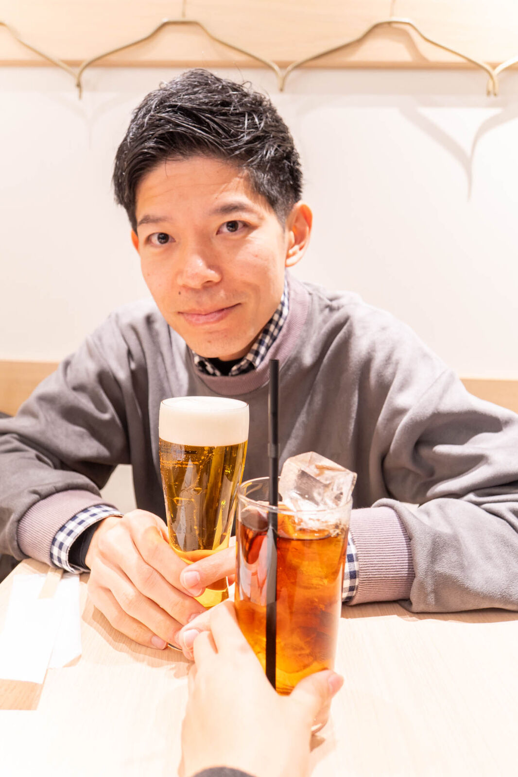 日本酒が好きと言いながら、1杯目はビールを頼んだいそっちでしたが…